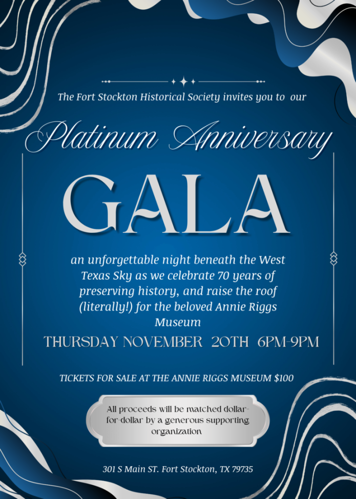 On November 20th, 2025, the Annie Riggs Memorial Museum will proudly celebrate its 70th anniversary—seven decades of preserving and sharing the incredible history of Fort Stockton and Pecos County, which dates back over 75,000 years.