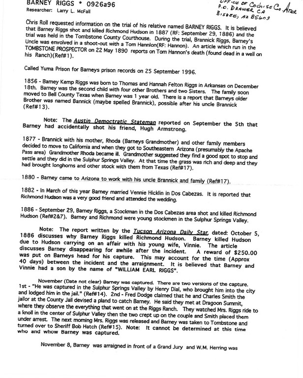 Below is the research done by Larry L. McFall on the infamous Barney Kemp Riggs. Click the images to get a closer look!